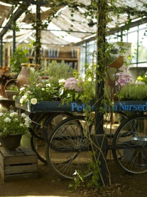 When I saw this photograph in housemartin a couple of day back, apart from the beautiful nursery the thing that got my attention was the huge 'Urli' a traditional Indian vessel. This got me curious and I read a bit about it online, but then today I pick up one of the old issues of 'Design Today' magazine from my table, and what do I see 'Petersham Nurseries' again. So taking a cue, here I am posting about this breathtakingly beautiful nursery which is an antique store and also a cafe. Francesco and Gael Boglione the owners of Petersham Nurseries in West London have travelled extensively around the world and to India. Which can be seen in these beautiful antiques and memorabilia that they have hand-picked and displayed so well in the nursery.