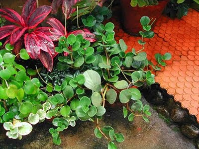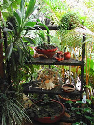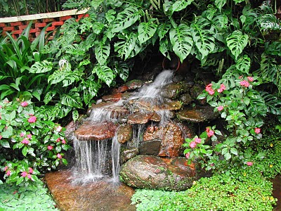 Anthoriums and other exotic plants line the outer wall...