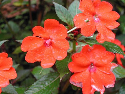 Raindrops drenching the bright red petals...